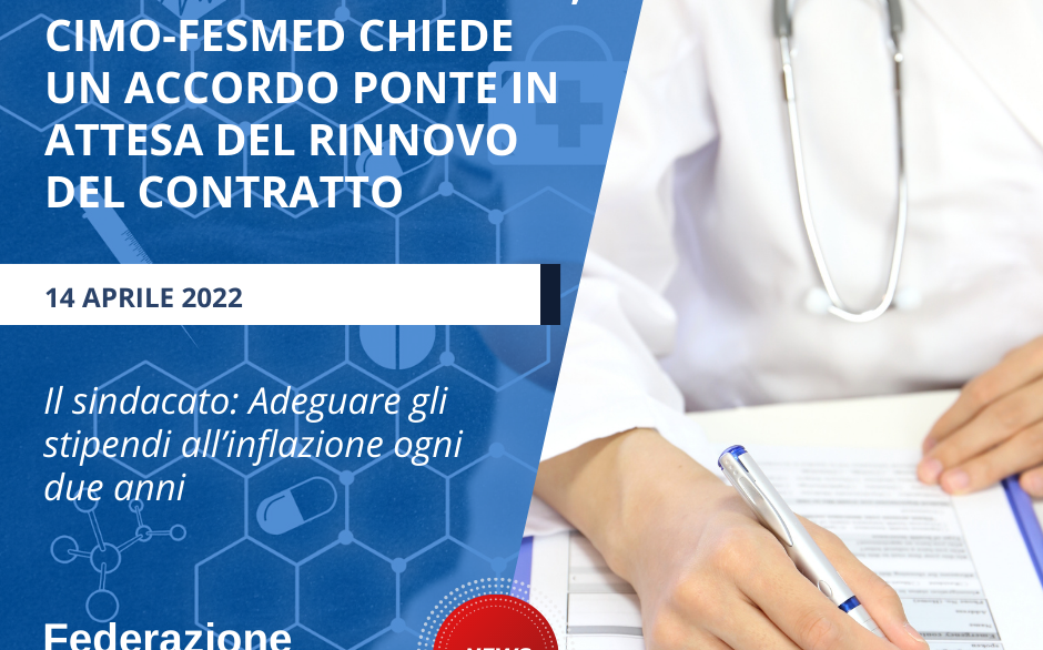 COMUNICATO STAMPA FEDERAZIONE CIMO-FESMED Medici dipendenti SSN, CIMO-FESMED chiede un accordo ponte in attesa del rinnovo del contratto Il sindacato:…